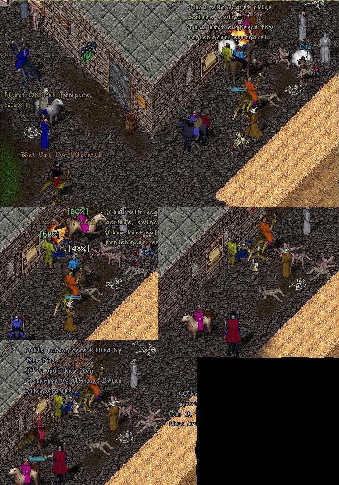 While deadly poisoned he manages to run all the way past the middle bridges before entering the spirit world and desecrating Lord British's sacred ground with his stanky corpse.
