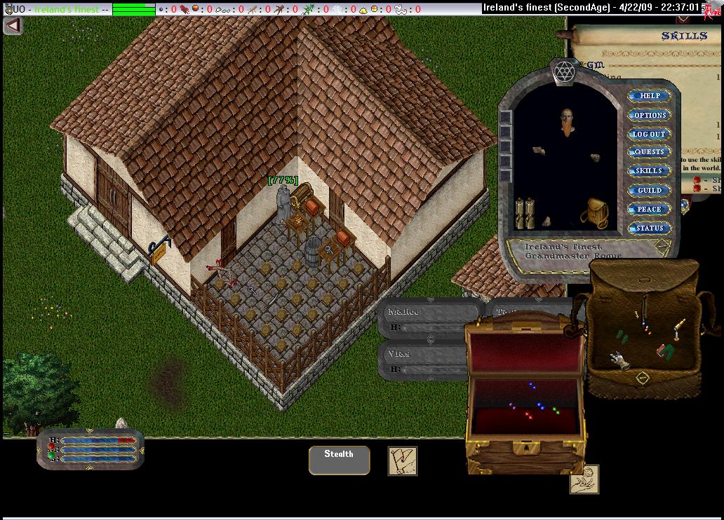 I happened to be walking, when I noticed a certain member of a guild was begging me to give him an anal cavity search. I decided to help the man out a wee bit and out came what I believed was an incredibly hard piece of feces. So I looked closely and it said "Forest South of Yew." Next thing you know I appear in front of a house, but a house of evil (the smell was incredibly similar to the hard piece of rectal infestation which I dropped right after I appeared in this foul region).