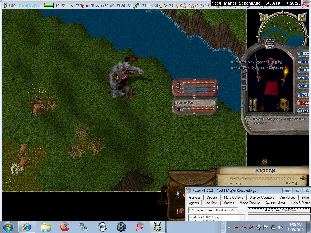 i dont remember osi '99 that well to comment on how fast an orc should die, but yeah i updated my last post. have noticed some monsters are wtfstrongIzual wrote:Are you kidding me.. Its an Orc.. Its a Kryss of Force +20.. I want to curse you!nightshark wrote:because you're not wearing any armor and not healing? your dex is kind've irrelevant when your stam has taken a beating like your screenshots