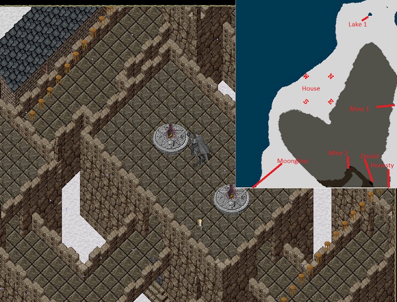 This castle comes complete with stairways to the main roof and the back roof. It is in one of the most luxurious areas of Britania. This area has very interesting things to do, including; (taming from 50 to 95), dungeon hunting (Deceit), a fancy shrine (Honesty), 2 lovely mining cave and miles of mountain to mine, a few lakes (for ice fishing), and is just a brief sail away from the lovely island of Moonglow (South). All of this versatility can be yours for the small price of 1,8000,000 Million GP. This is not an auction. I will accept 180 silver, neon hair or beard dyes, and more as currency(no clothing bless deeds).