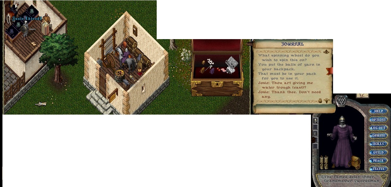 Nah, I was chillin' in my small house, spinning wool on my loom (my alt char in brown robe was cutting bandages)... and I got surprised to see someone "talking" from next door!