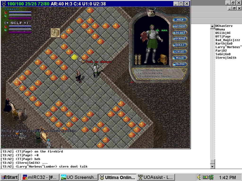 This is from Chesapeake where B*D (Bloc Darken), J^D (juventus de diablo), and a few other PKers gathered on a roof on Ice prior to a PK hunt. Notice dyed furniture.