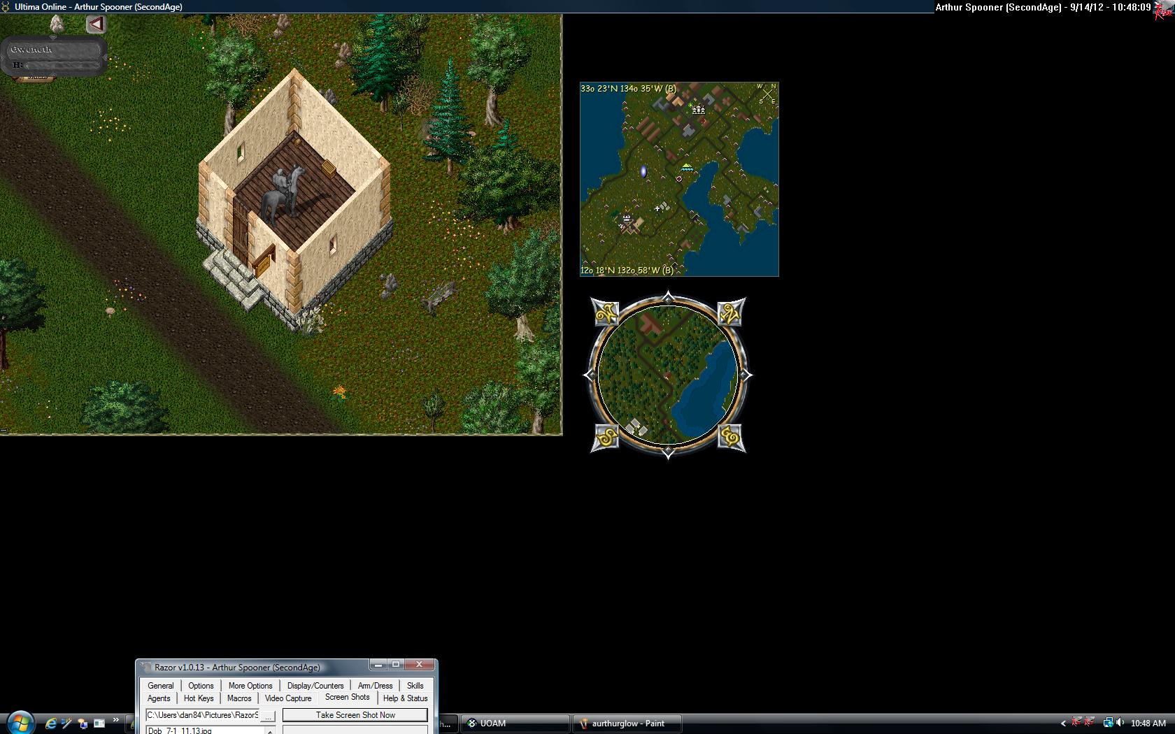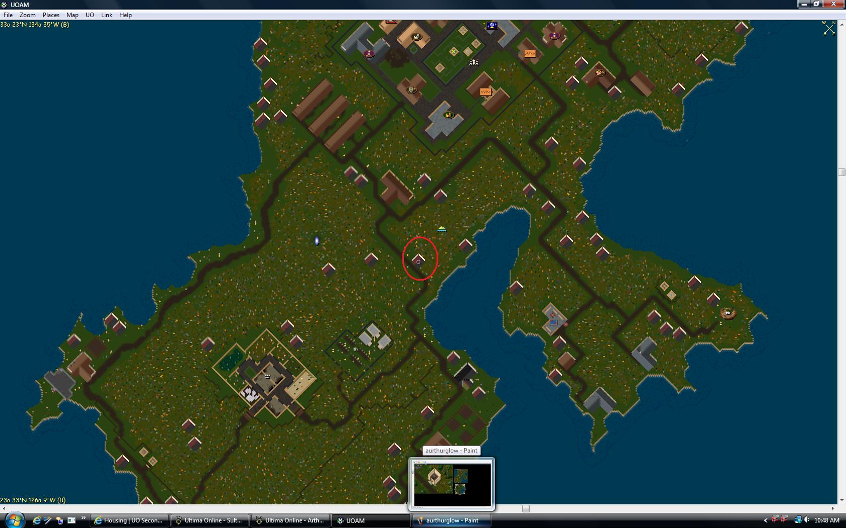 Up for sale is a small house on the road near Moonglow and the moongate that would be a Hot Vendor Spot. No direct neighbors and Road Frontage!! Excellent, convenient location for town, moongate, and the sea. Plenty of wood to chop for the lumber jack. I have owned this home for a long time and now is the chance for it to be yours. Auction ends 48 hrs after last bid.