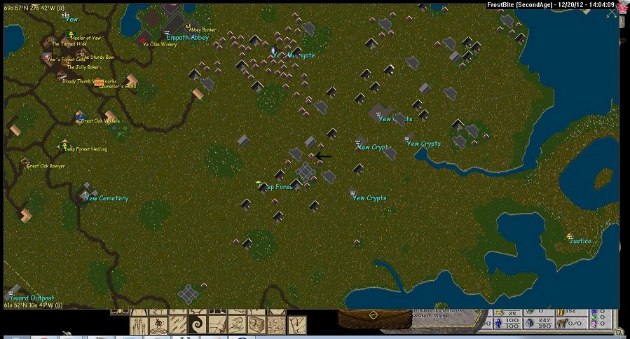 Nice small outside Yew Crypts a short jog from Yew moongate. Nice mild spawn and plenty of lumber. The crypts are not a very heavy spawn but there are a few liches ill kill occasionally with little pk activity. Nice starter home for the crafter or adventurer.