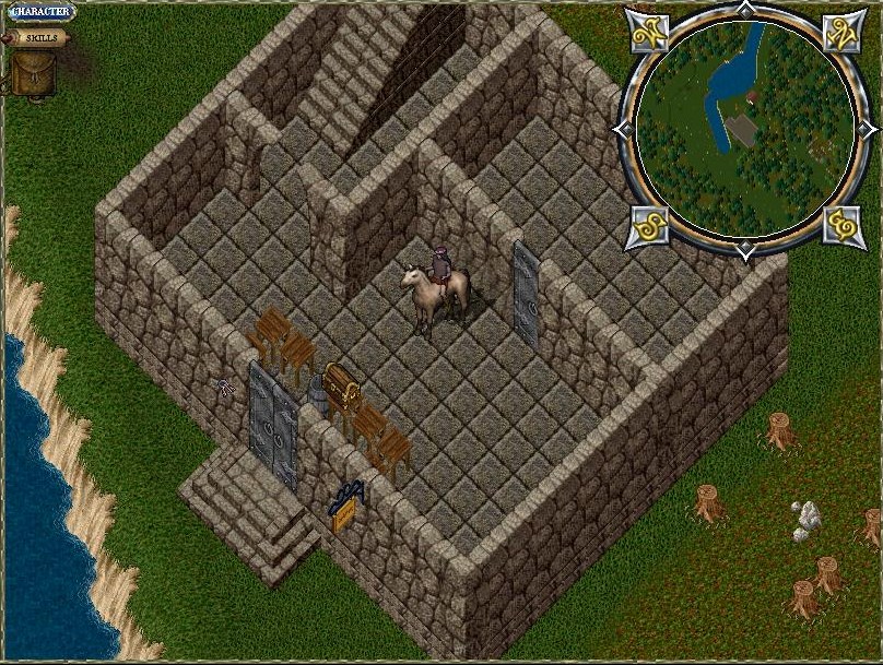 I have on sale today this placed Tower. Located ideally near a river with plenty of lumber around. Mining is to your south. This area has minimal spawn, I have seen the usual Ettins, Orcs etc but nothing any hardy Adventurer coudn't over come. If by some chance you do meet the Grim Reaper then to your East lies the Shrine of Spirituality for a quick ressurection. Also of interest, the Player community of Paws lies to your east and further SE is the Town of Trinsic.