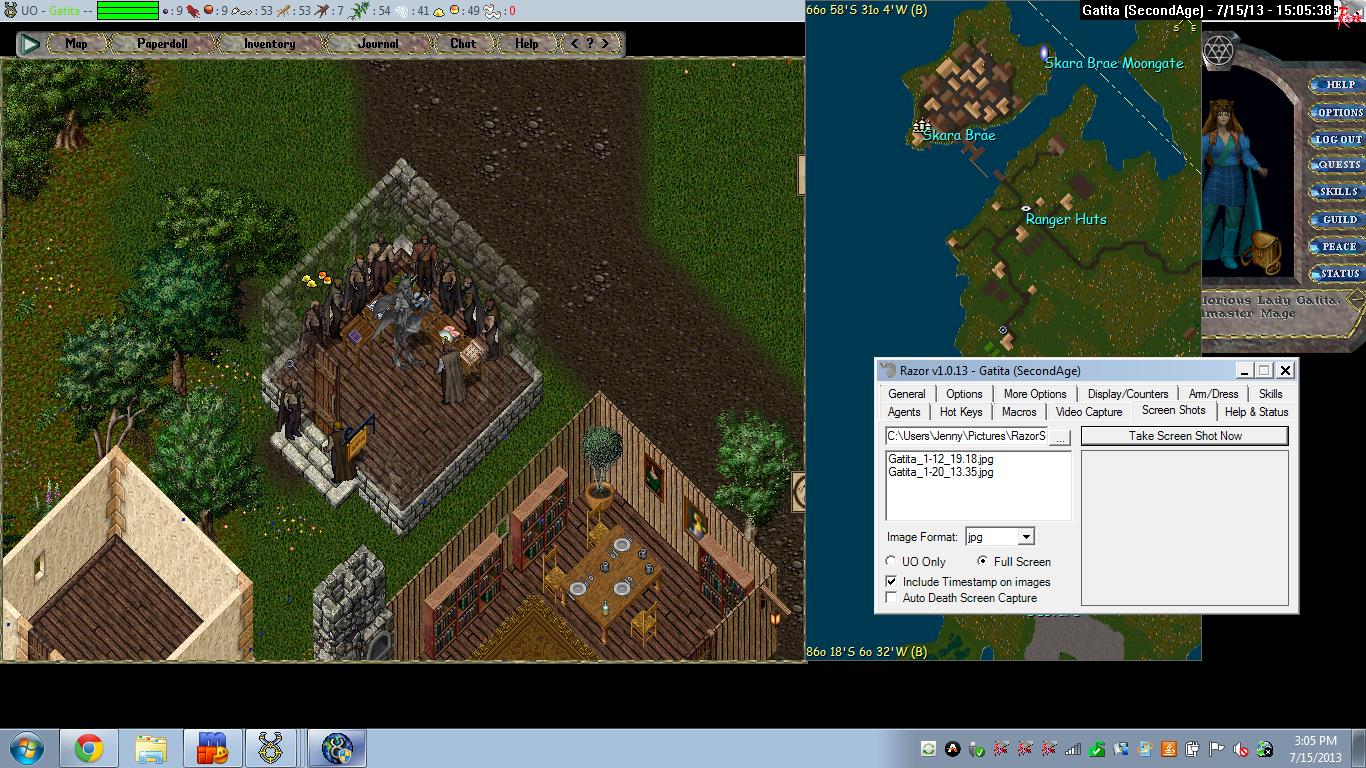 Kitty Kat Vendors is located just south of Skara Brae and has an assortment of items for sale including but not limited to; Potion kegs, Scrolls, Armor, Reg Packs, Runebooks, Magic Weapons/Clothing, Semi-rares, Add ons, Poison Weapons, & items pulled up from the sea.