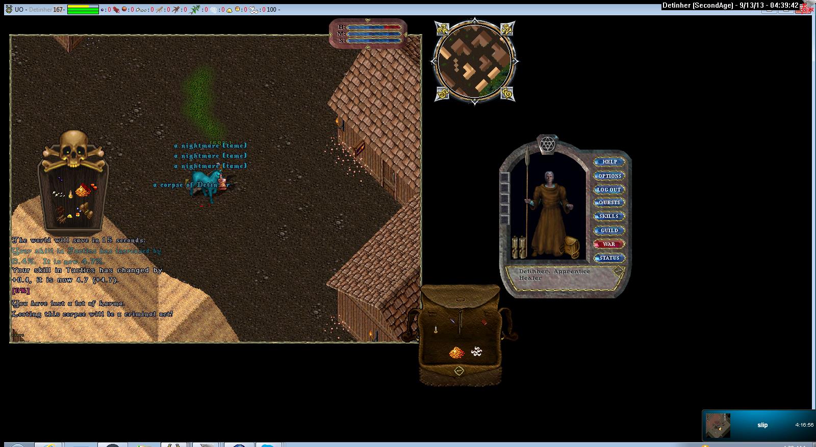 Detective memememme already figured it out. N-R found SLK's GM afk (as well as a random SLK dexer off screen) while preparing to invade N-R's guild town. 30 seconds of intense standing in combat mode ensued and Abe made off with a new night mare and some other loot.memememe wrote:Killed an afk guy with a newb char and prolly gated his nightmare I'm guessing. I'm pretty sure the mouseover on the horse isn't intentional, just a really bad fuck up on a good screenshot.