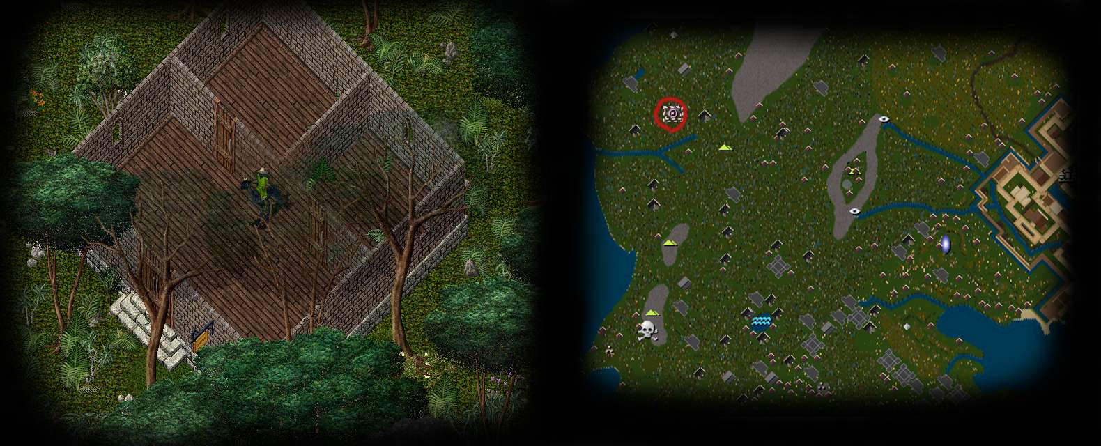 Deep within the jungle far, far south/west of Trinsic you'll find this beautiful large brick house surrounded by lush vegetation and abundant wildlife. With a river nearby, mountains to the east and the Delucia passage to the south, you'll find several points of interest within its vacinity, and now is your chance to own this beautiful home! The first to bid deed + 1x small gets it!