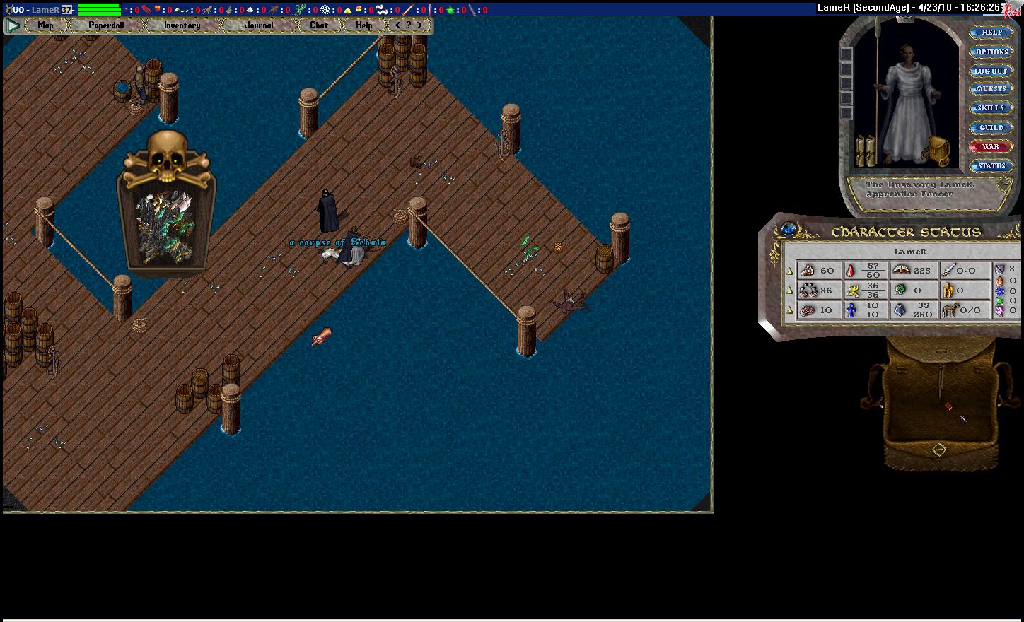 You sure? Every time I wander by the docks there always seems to be dead fishermen.SJane3384 wrote: Town docks are good, because since you aren't deep water fishing (and can go afk), you are much less likely to get killed.