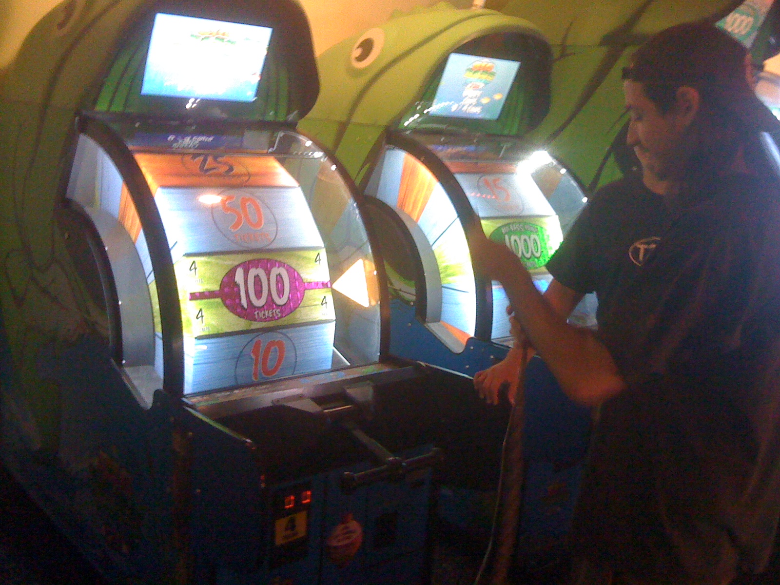 Outside of Fun-Spot, can't miss it, is a big Red & White Tent.