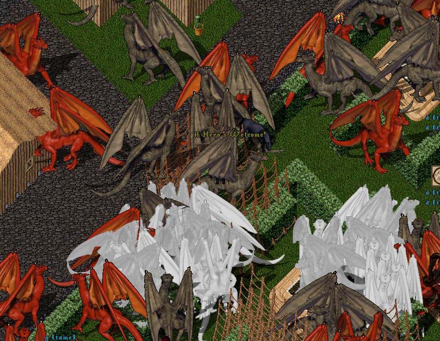 The recent red switches that have been found in Yew were the key to opening the East path in the underground Ancient Lycaeum. The drummer, the shirtless bard, and the tamer decided to take a load off and enjoy camp...
