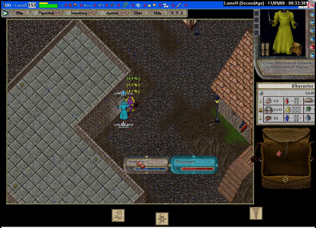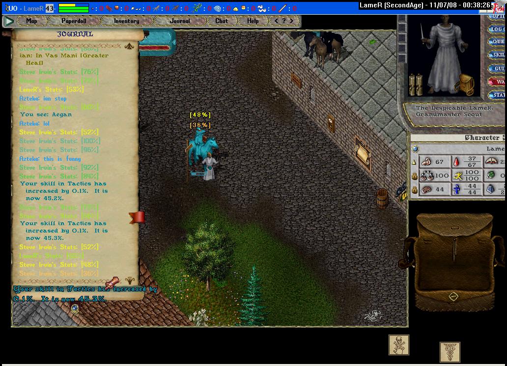 Our tale begins in the fine city of Britain, at the eastern bank. An absentminded fellow drops his runebook, and I, always a noble bard, offer to return it.