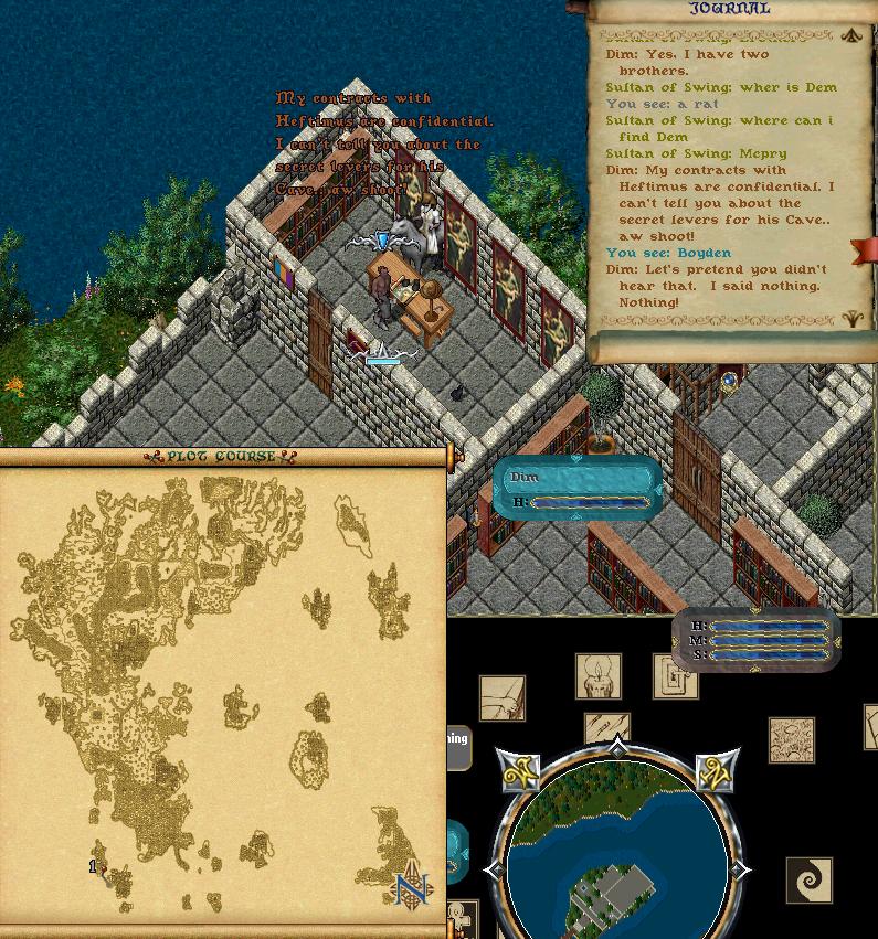 Lord British's scouts have confirmed that the reports from adventurers are accurate. It appears Heftimus McPry was involved with something sinister. This may have explained his absence over the past decade. While cleaning up the desert hideout and destroying the tunnel, British's troops stumbled across a clue that has not yet been shared; the captain's journal.