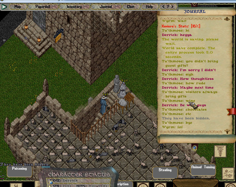 I sat and watched this guy walk down his pre-defined path sheering sheep while he went, and then dropping the wool into the chest at the end of the path. I then killed all of his sheep with EQ while his character did nothing but walk back to the beginning of the path, and repeat his movement pattern.