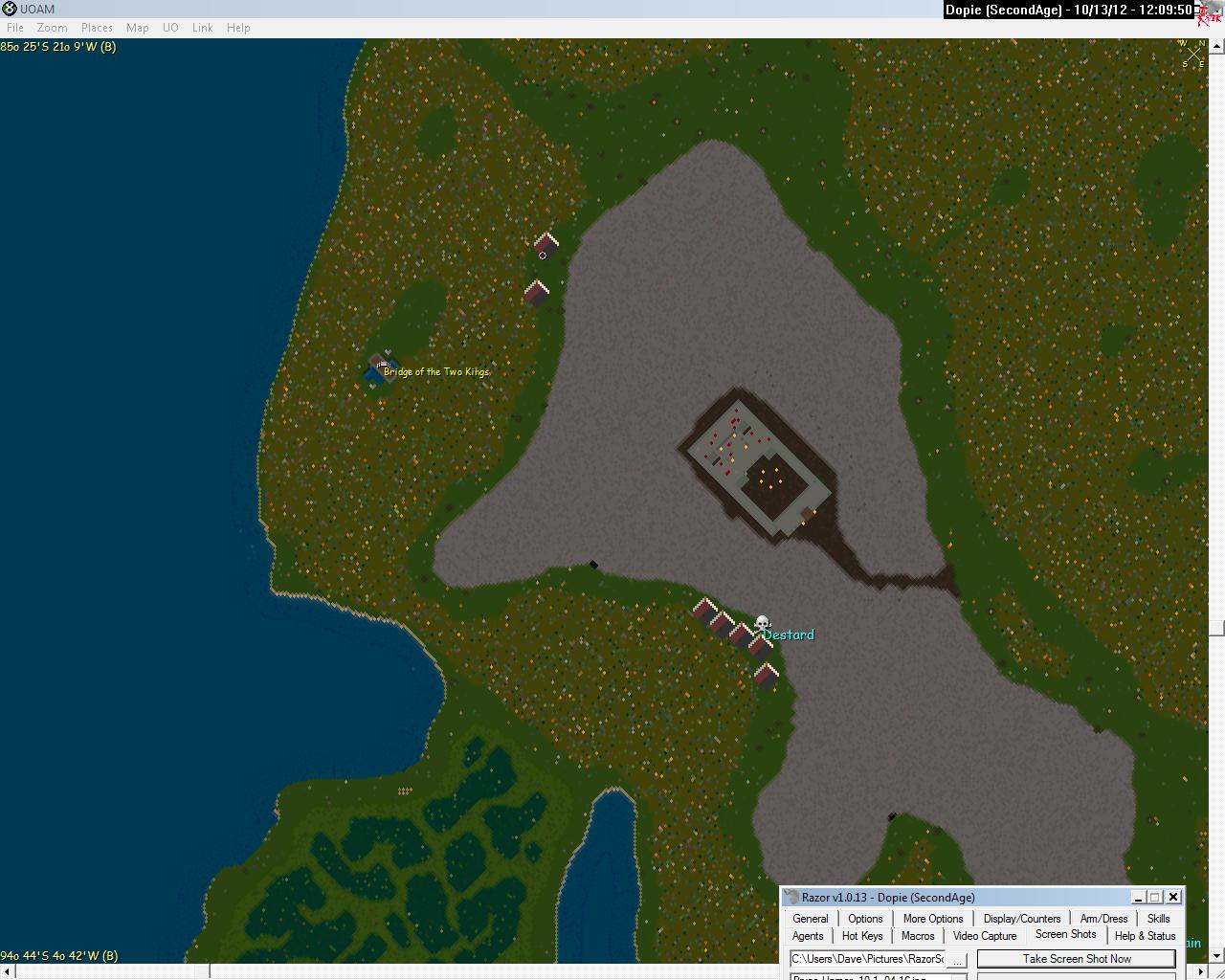 Small House next to the mountain and a couple screen away from bridge of the two kings. this mountain does not run out or ore. great place if you farm Destard alot PVM or PVP..