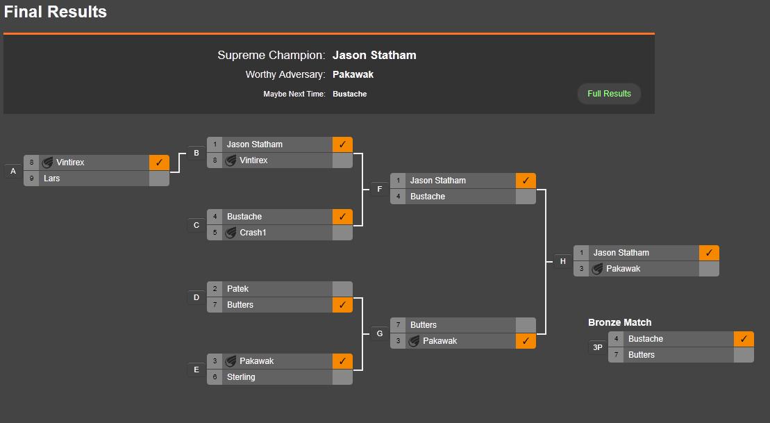 Thanks for coming everyone, keep an eye out for the next tournament!