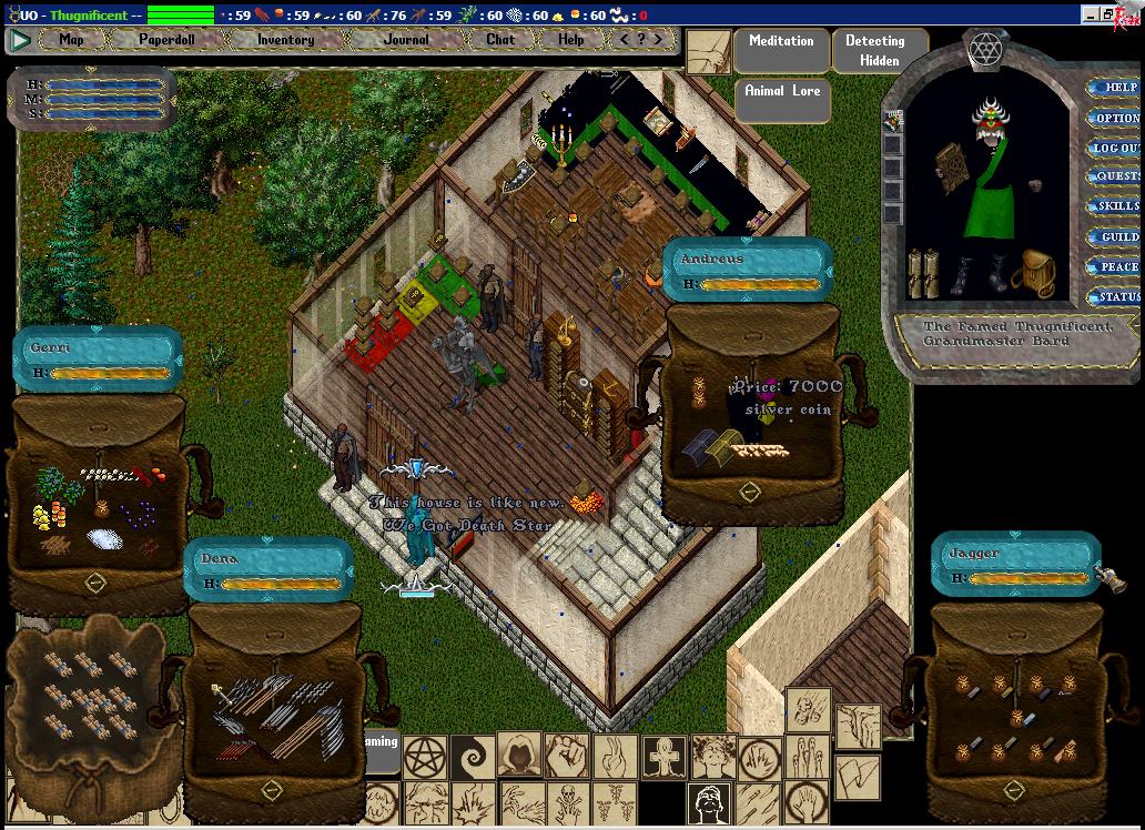Restocked: Regs, GM Weps (all at 150 gp), 1 silver coin currently on Andreus, put a few Recall scrolls on Gerri, because being a Rune Library without Recall scrolls for sale didn't make sense. Also, Rune Library is nearing completion, just finished T-Map Runebooks as well as Spawning Rares and Upscale Lockpicking. Expect more in the near future...