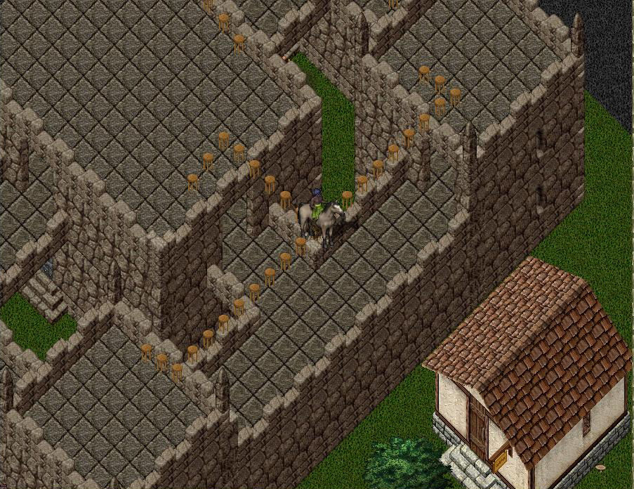 The castle is a mere 2000ish screens from the Yew moongate, as seen below: Castle comes with staircase and bridge to all 4 corners. Spot is very low traffic, never seen the neighbors in. Feel free to PM me with any questions!
