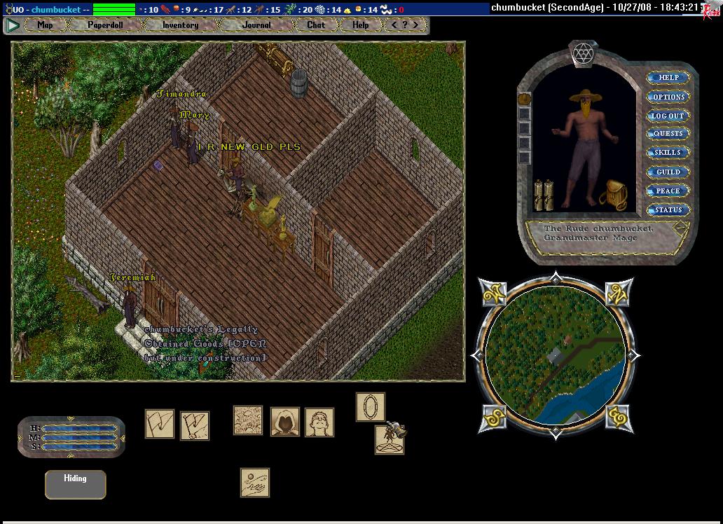 (2) Square Dealing: That's right. At chumbucket's Legally Obtained Goods, there is no scamming and no stealing. All items are as described. None are described in a misleading way. I and any of my associates never steal, scam or kill near the vendor. I, of course, reserve the right to self-defense.