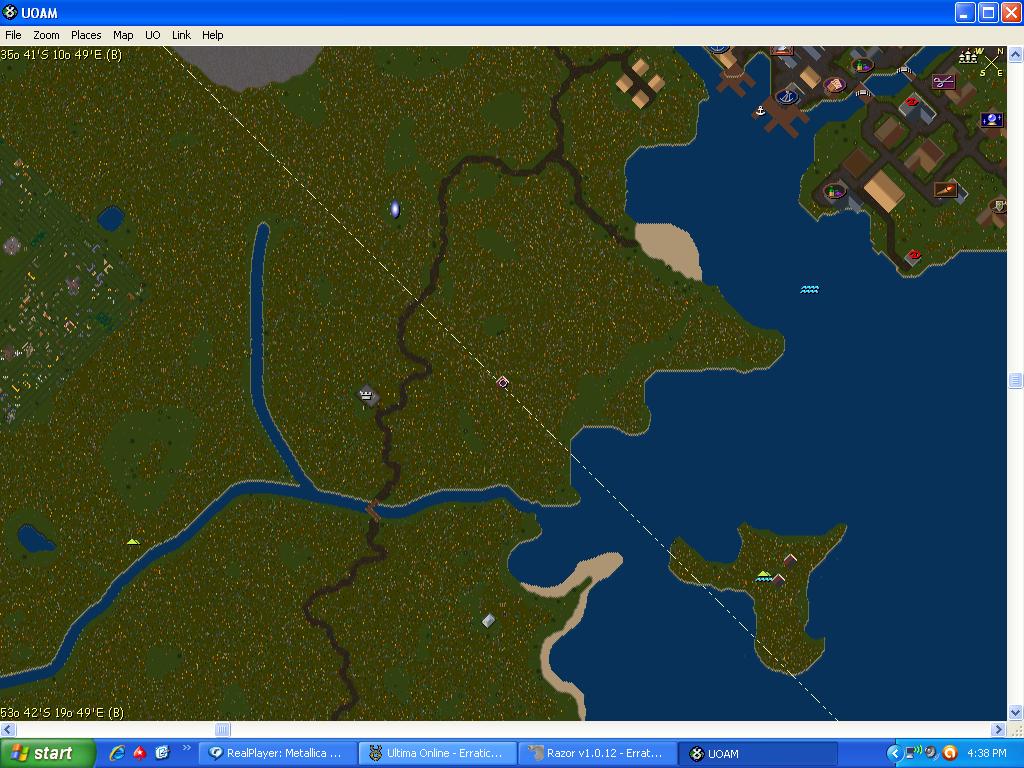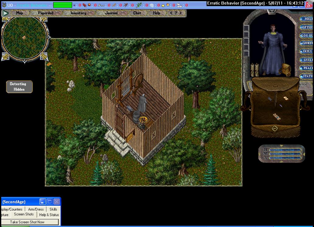 Quiet place just east from Britain moongate, south of town.. Built-in barrier consisting of an anvil, forge and loom with a spinning wheel in the back corner.. Less than a 2 minute walk to town.. Great starter house!!