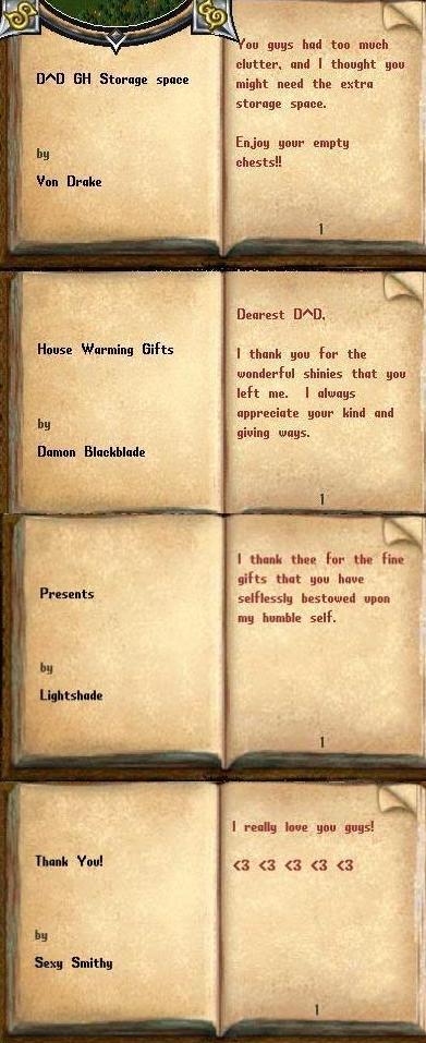 After GOD never showed up, our hero decided to take a walk around the house to see what was there. Truly the riches amassed by these feared fighters in the D^D guild were enormous!! But what's this?? Chests full of clutter, dye tubs just laying around?? Is this the way such a worthy guild as D^D be organized?? Surely not!! Thus our hero decided to do a bit of cleaning and freed up some very needed space in their guild house. All the rubbish was towed away to another location, allowing for more leet lootz to be brought in!!