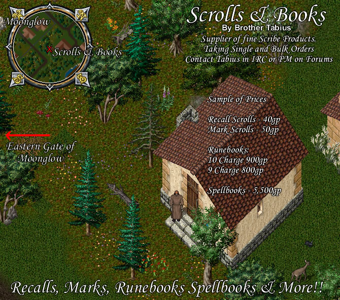 Located conveniently outside the eastern gate of Moonglow I am here to supply you with all the Scrolls and Books you need.