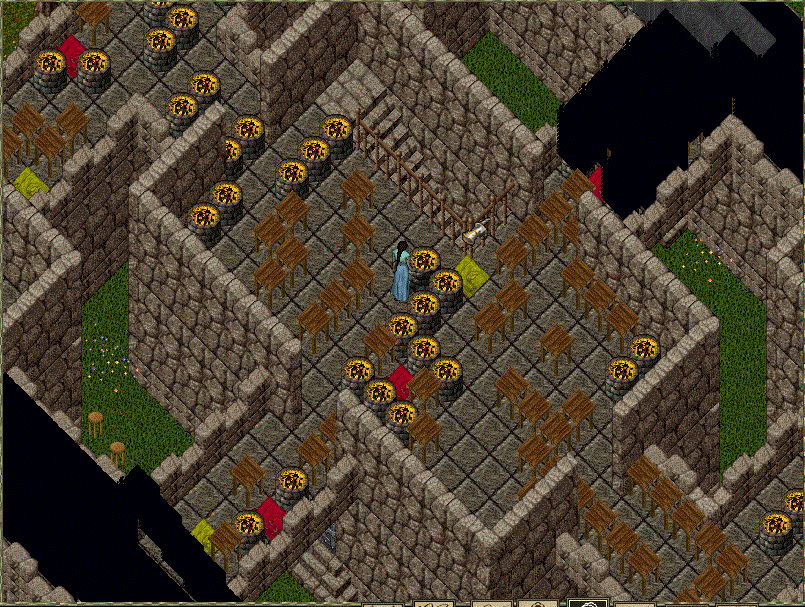 Players will be given 30 of each reagent 30 band aids 1 greater healing potion and 1 greater cure potion. Players will also be given random numbers inscribed on a rune as to their place to run the gauntlet with their starter packs. The player with the number 1 rune will then proceed first into the castle maze through the courtyard. Throughout the maze will be chests locked down with with various prizes for the taking! But! a word of caution to the participants I have not left the castle unguarded! Take too long and the maze will take your life, go too quick and you will not get very much but a good story to share at the tavern with your friends.