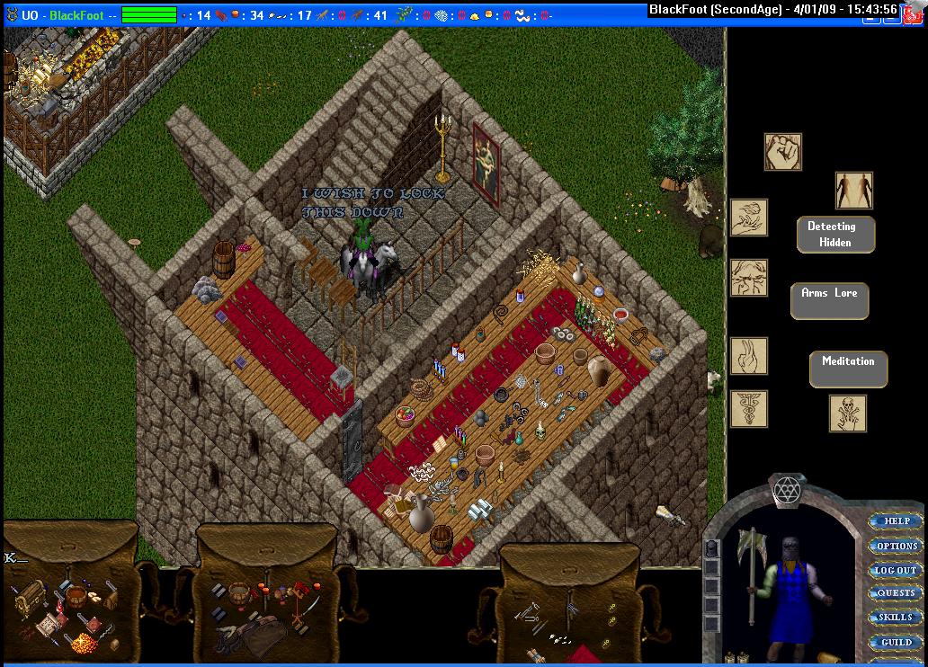 Dark Radiance and myself spent some time trying to design a roof top to display the statues, as well as keep the place secure, we both think the small forges make the best stands for these statues and make a good wall. If you have any small forges or anvil deeds sitting around or willing to donate please do.