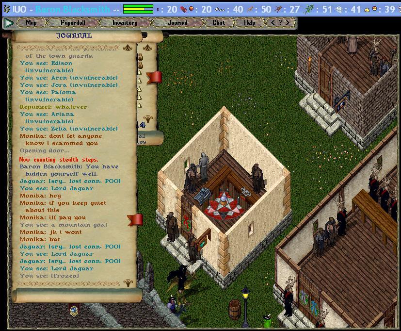 Recalled in to stock my vendors and what did I see? Everyone's favourite "honest", anti scam schizophrenic mental health case Joshua Lee aka Monika, admitting, in game, at a public bank, to scaming, and asking it to be kept quiet to protect he's reputation. Pay attention to the journal on left hand side of screen.