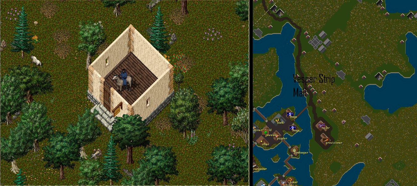 As the title says.....Vesper Strip Mall is 3 or 4 screens away and town is literally 10 tiles away. Recall to your house with complete safety.