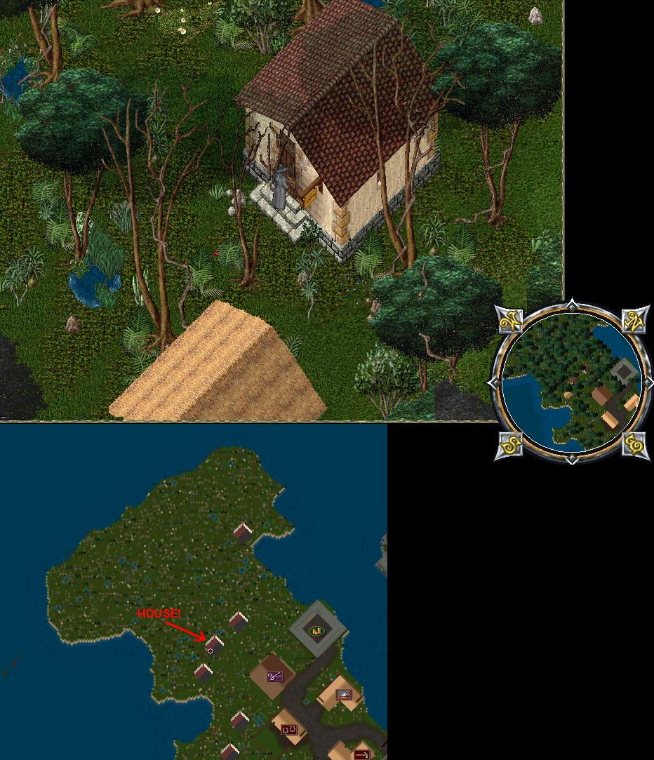 Small house placed right behind the Serpent's Hold tailor shop. A clear, straight line path from your door steps lead to guard zone. No dodging weeds or trees getting to the safety of town guards.