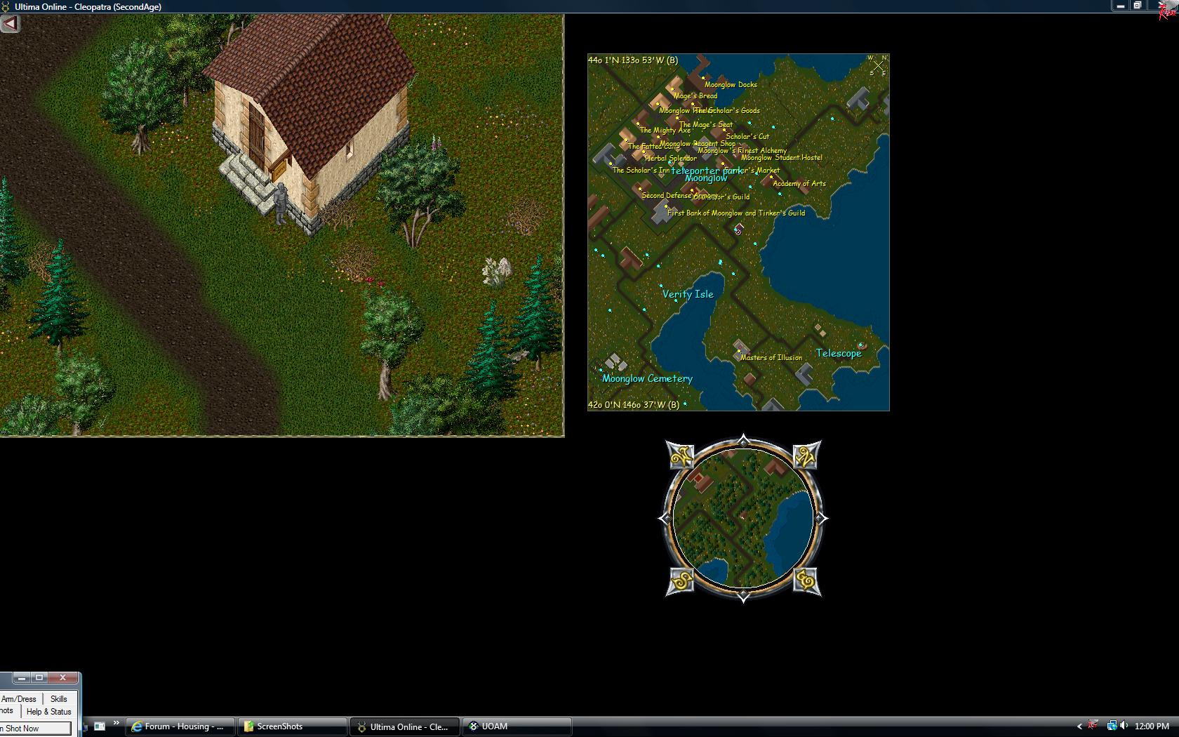Here is your chance to live just outside of a town. This house is located just out of the east gate of Moonglow on the road. It is a few seconds run from the bank and just a few screens north east of the moongate. Coordinates are 44' 1 N, 133' 53'W. Excellent house for a vendor and convenient for any character type. Don't let this one slip away.