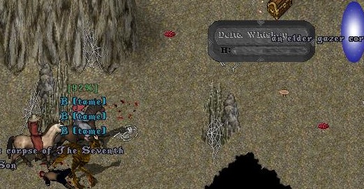 This was the day we found our nemesis, Tamers! And PL and eBK. Day started off with us checking the popular spawns for people. Found a tamer (Kendra) along with some other cronies camping the spawn (among them mr. Seventh Son), with 500 dragons. Elder Gazer corpses popped up like there was no tomorrow, so we assumed they wouldn't miss a little amount of gold.