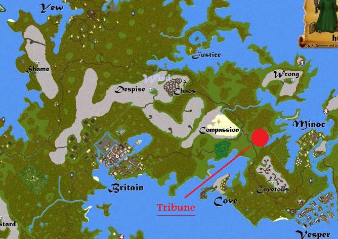 Tribune is a player run city just west of minoc, covetous, and vesper, and just east of the Compassion Shrine desert.